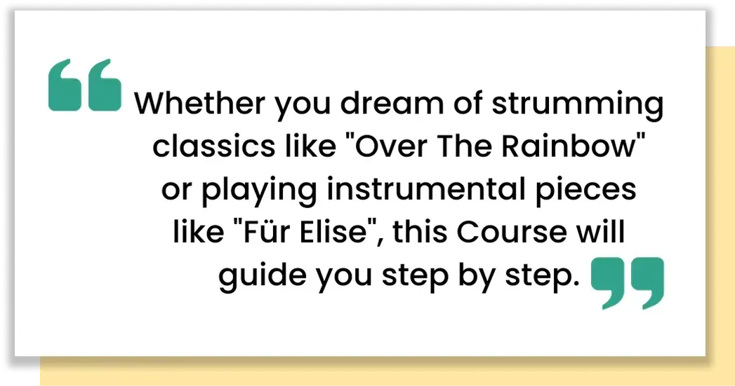 The Ukulele Course For Total Beginners is the fastest and most fun way to get there— without frustration, confusion, or endless hours of practice.