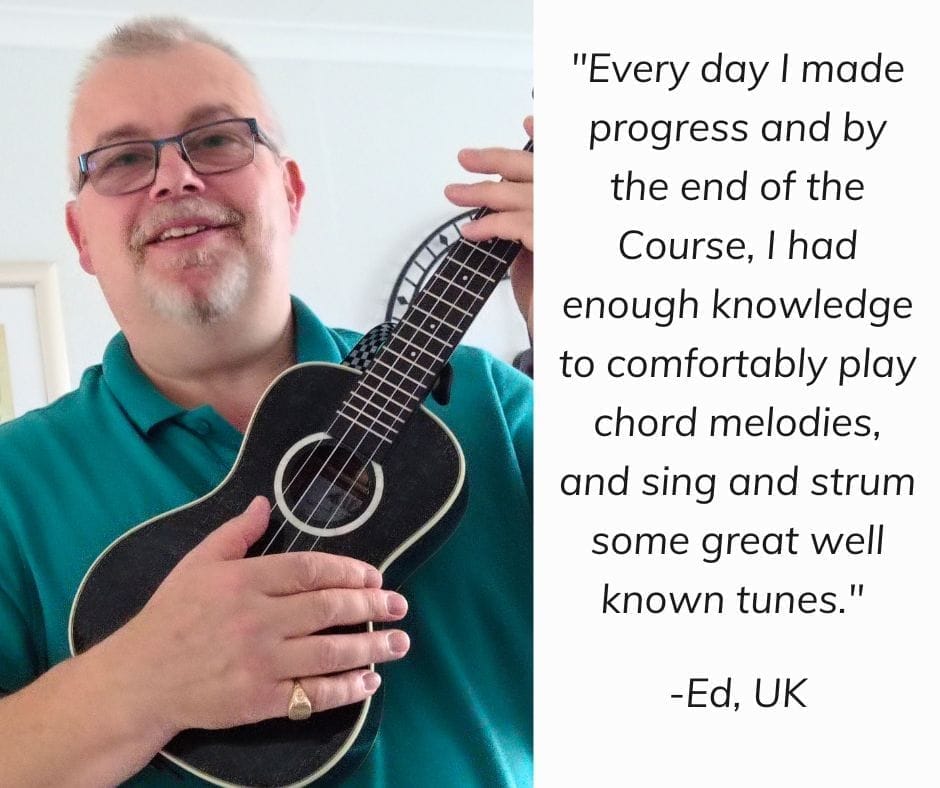 "I'm so glad I signed up to the total beginners course, Lindsay. I actually then started to have fun learning the ukulele.” – Ed, UK